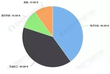 目前,在我國(guó)特種氣體年銷售額中,電子行業(yè)約占40%,石油化工約占40%;醫(yī)療環(huán)保約占10%,其它約占10%。