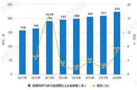 中國(guó)特種氣體行業(yè)企業(yè)數(shù)量增長(zhǎng)緩慢