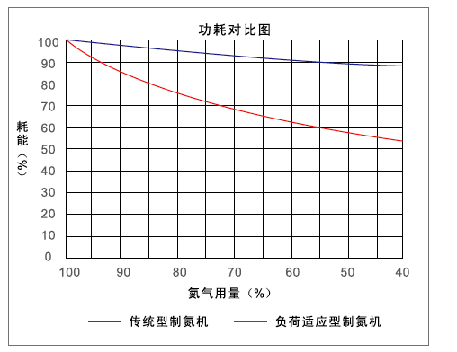 先進的負荷適應功能對變工況運行實現(xiàn)進一步節(jié)能 針對用戶用氣不穩(wěn)定工況,根據(jù)分子篩的特性,在保證氧氣性能穩(wěn)定的情況下,有效減少單位時間內(nèi)富氮氣體排放次數(shù),減少原料空氣的消耗,減少生產(chǎn)成本,以達到負荷自動適應的節(jié)能功能。