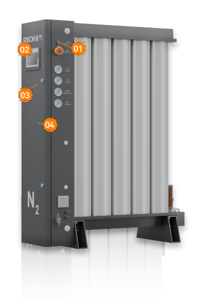 03 純度檢測儀:選用國內(nèi)知名廠家的氮氣純度分析儀,確保氮氣純度實時在線監(jiān)測精準、迅速